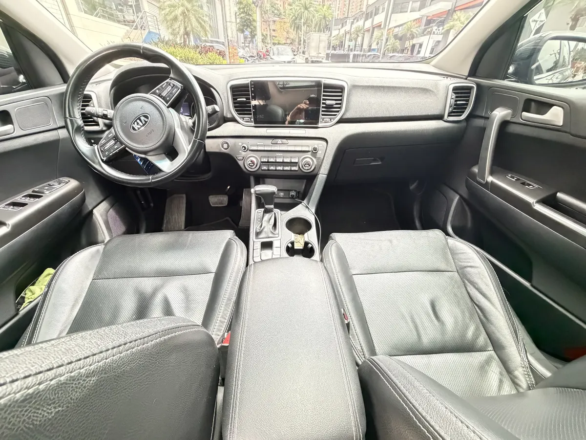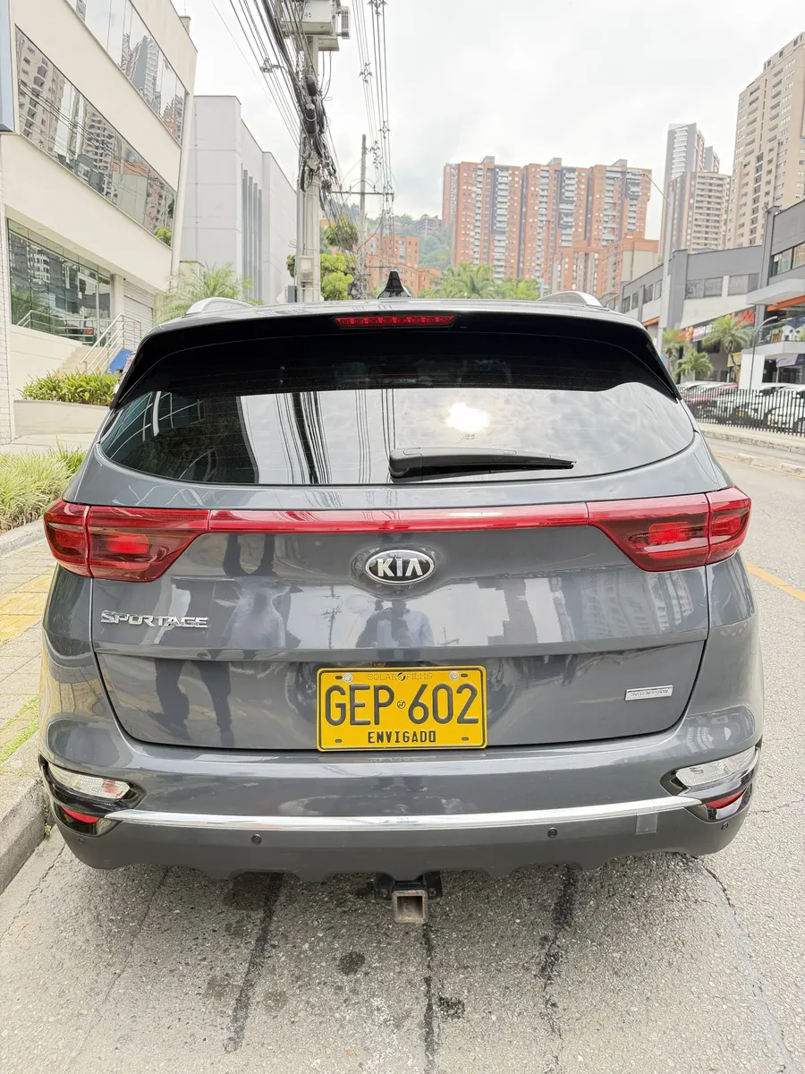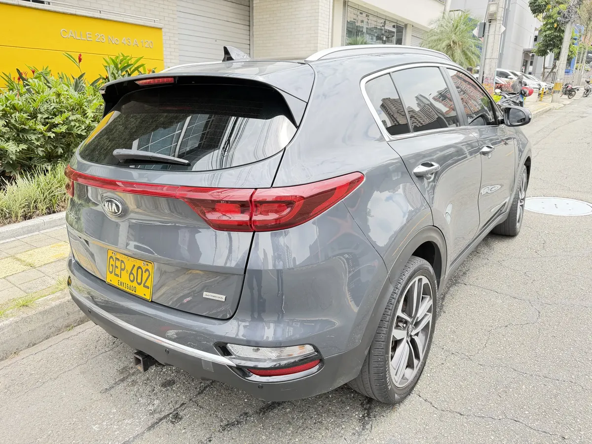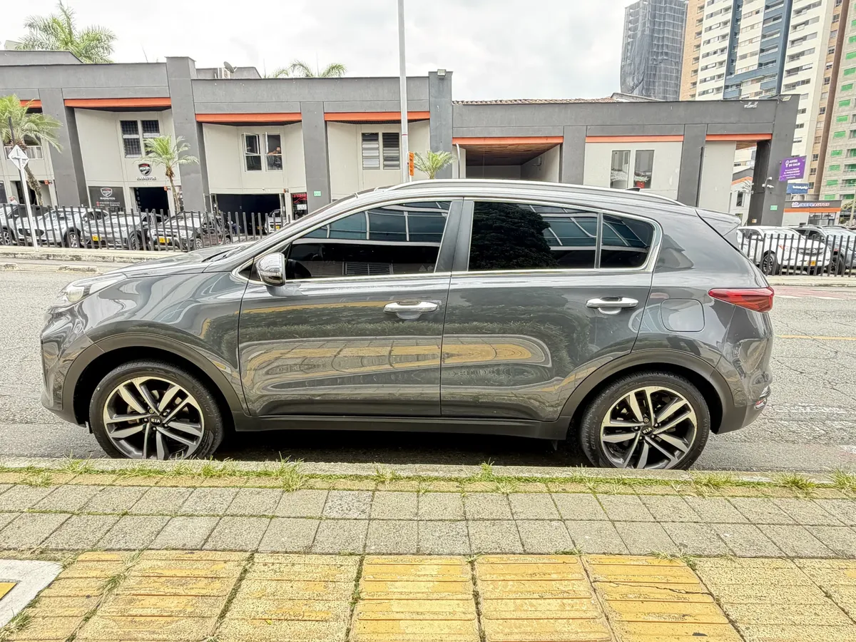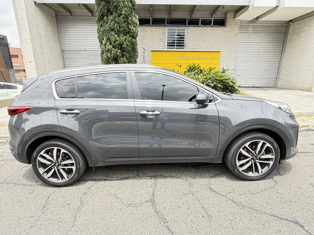 Kia Sportage 2019, usado, con 90,000 km. Este modelo cuenta con un motor de 2.0 litros y 155 hp, acompañado de una transmisión automática. Su color gris le da un toque moderno y elegante.